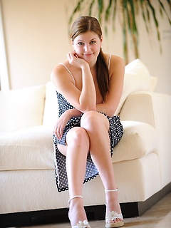 Big breasted teen girl Megan Salinas pulls her miniskirt aside