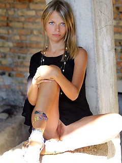 Cute blonde girl Inga shows her sweet pussy