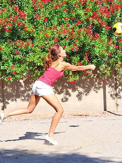 Valerie plays naked in a park