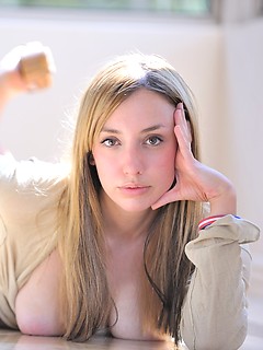 Big breasted teen girl Megan Salinas pulls her miniskirt aside