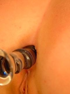 Katelynn fucks her ass with a glass toy