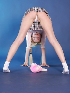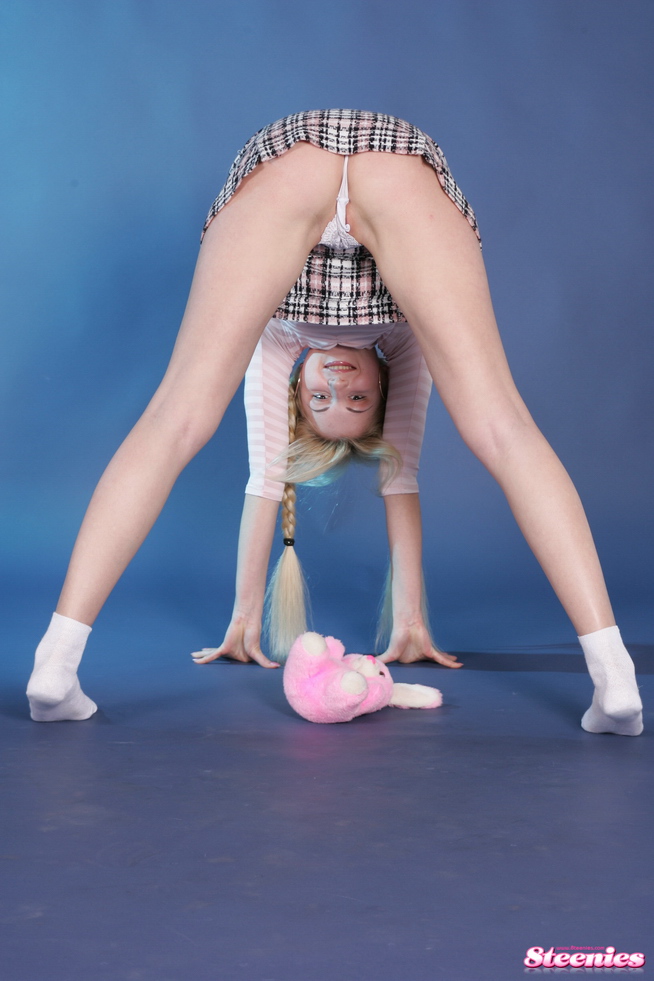 Blue-eyed blonde Pinky June rides a dildo pillow