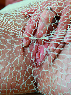 Little Caprice masturbating through fishnet pantyhose
