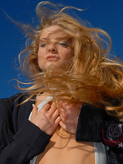 Buxom blonde babe Marry Queen takes us for a ride as she fingers and fondles her horny landing strip pussy