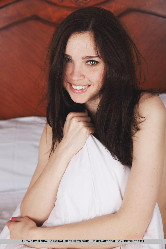 Watch brunette spinner Anita give her little tits a long hard massage and pump her fingers into her bald needy pussy