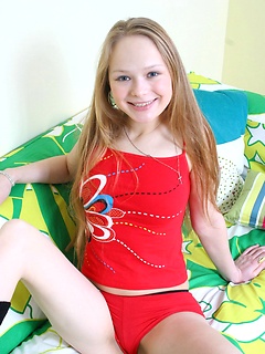 Cute Hannah Hays shows pussy in colorful and different panties.