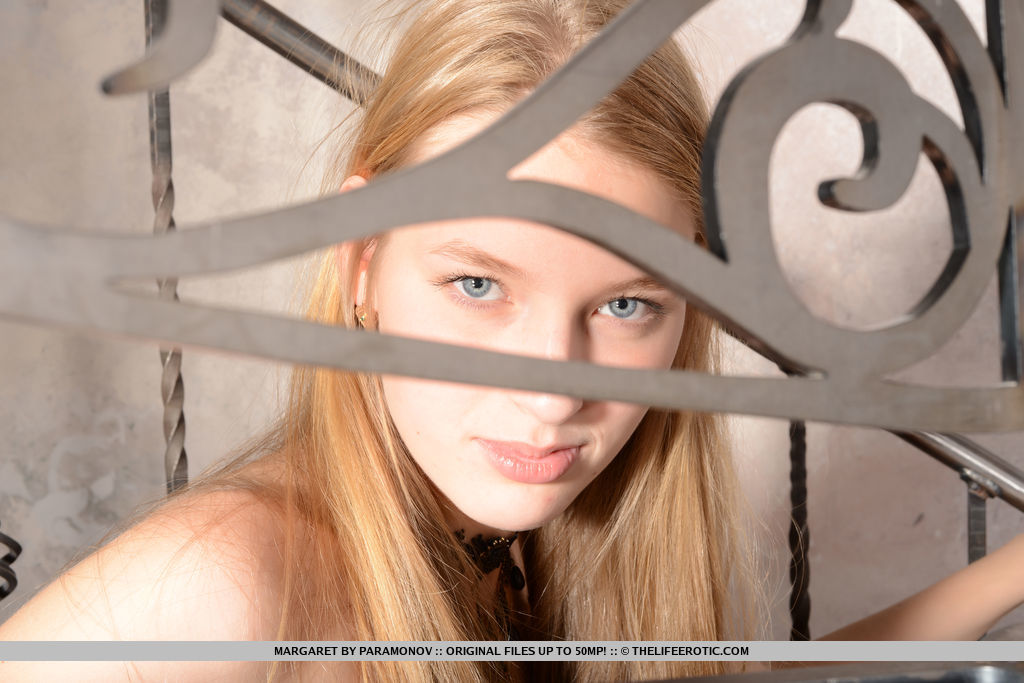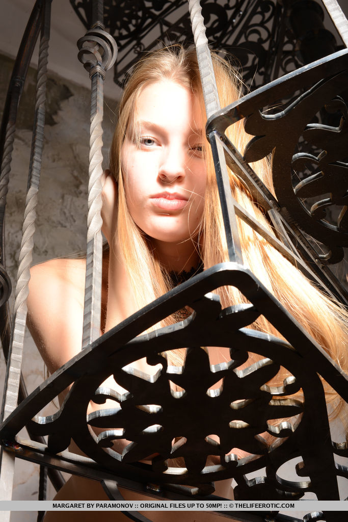 Leggy teen model Lucy G peels off white lingerie and stockings for nude poses