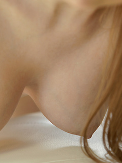 Buxom babe Stacie Jaxxx pinches and palms her big bouncing tits and then leans forward to satisfy her bald juicy pussy