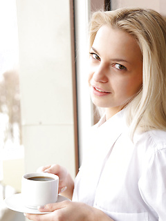 Blond russian teen Kisa A shows her small tits and pretty ass