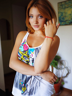Red haired hottie Madeline gets naked and shows her wet young pussy