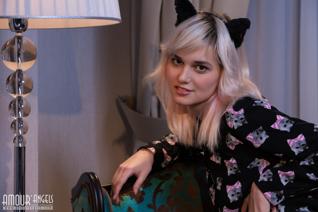 Blond russian teen Kisa A shows her small tits and pretty ass