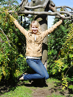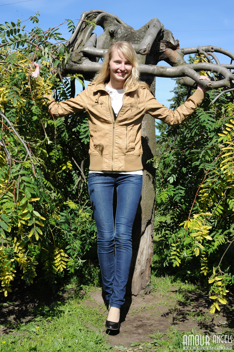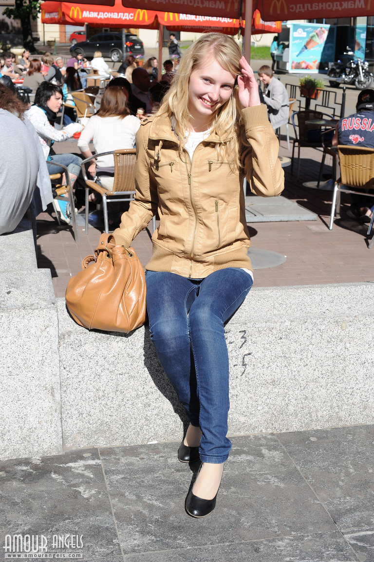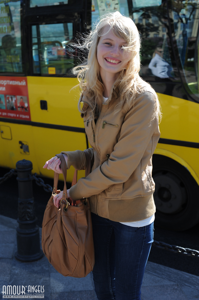 Blond russian teen Kisa A shows her small tits and pretty ass