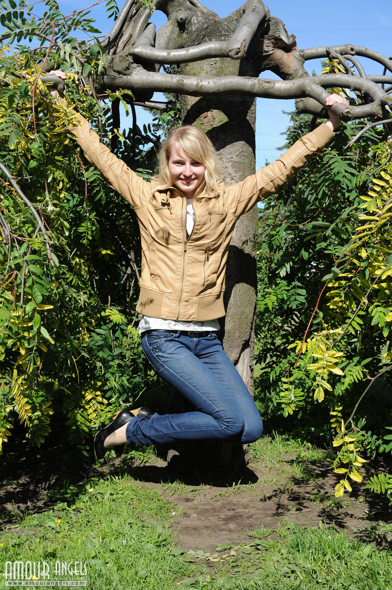 Beautiful tanned blonde teen from Russia Mischa shows her perfect tits