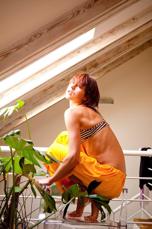 Natasha bending on the chair