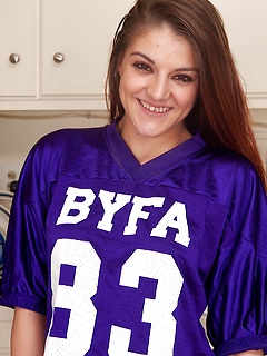 Perky titted Haley Banks masturbates in the kitchen.