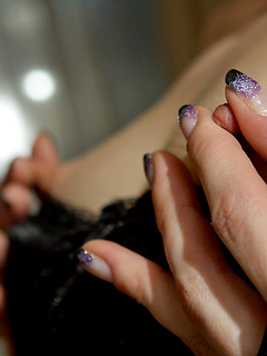 Selma Sins struts her stuff in sheer stockings and high heels before filling her horny hole with her talented fingers