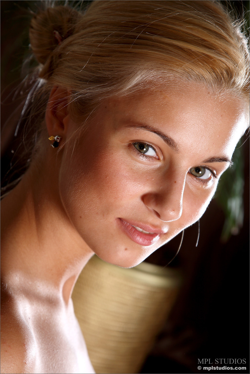 Beautiful tanned blonde teen from Russia Mischa shows her perfect tits