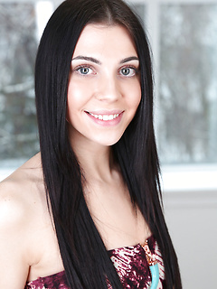 Pretty slim girl gets nude exposing her tight teen body and spreads her legs showing her pussy
