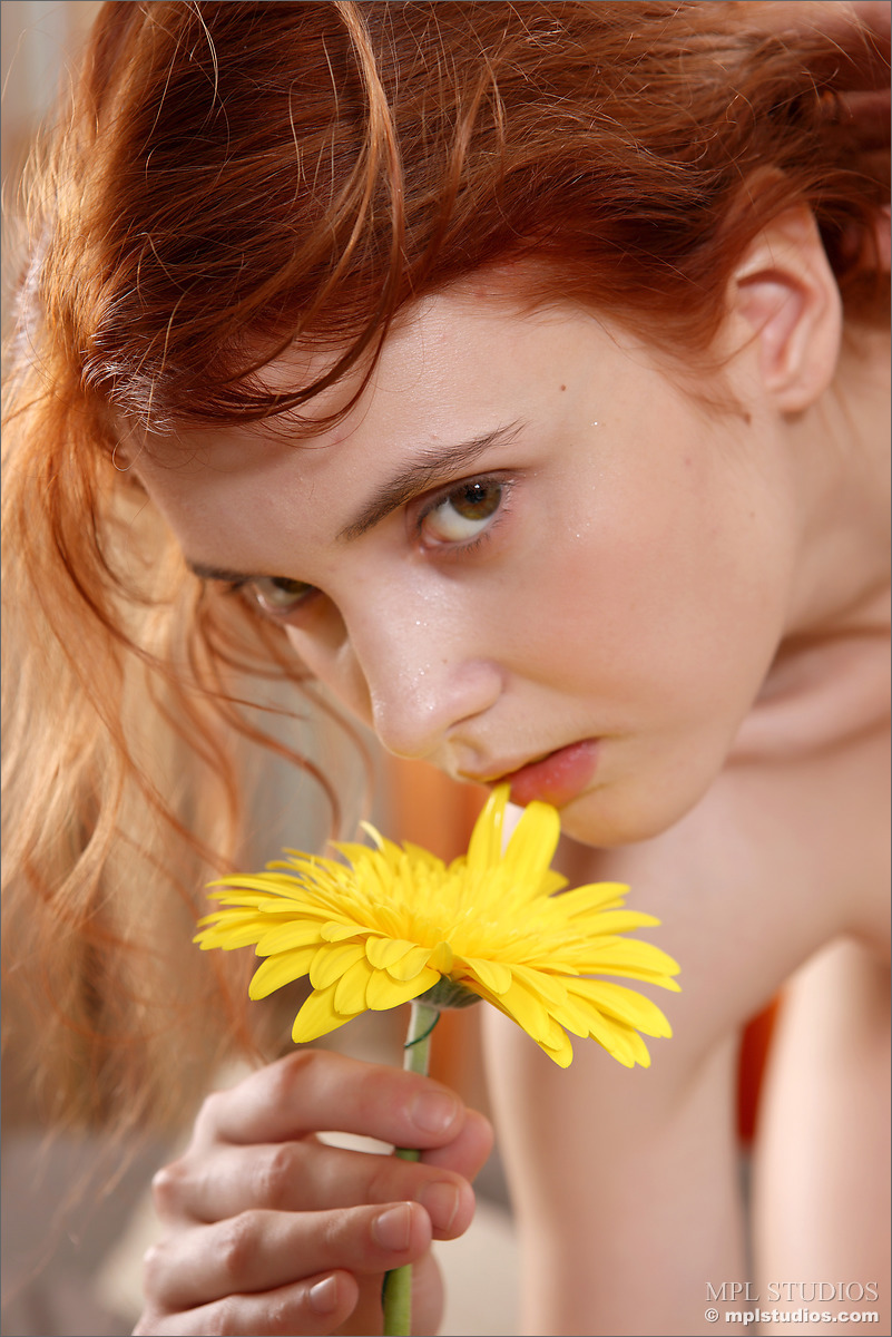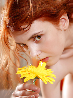 Red haired hottie Madeline gets naked and shows her wet young pussy