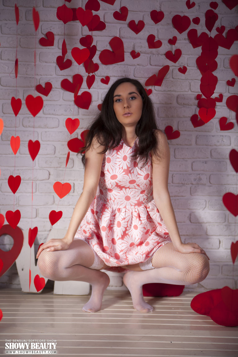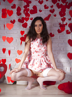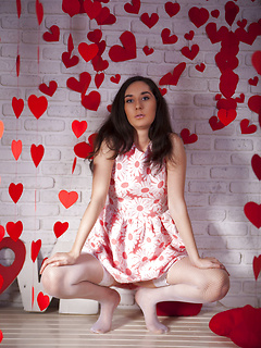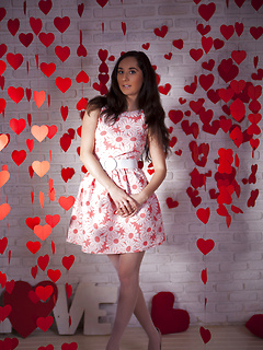 Cute brunette girl Kara from Russia, she shows her sexy young body - bald pussy and small tits in Room To Move