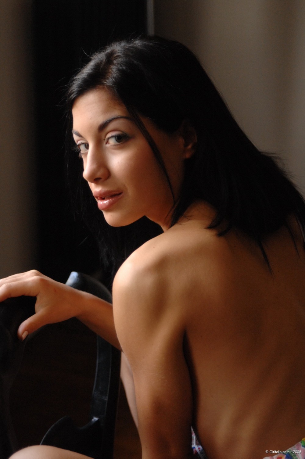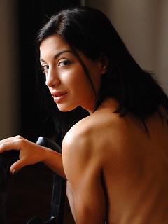 Gentle teen with tiny tits Debella Z strips down and caresses shaved pussy