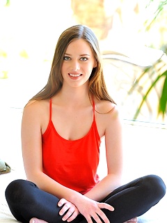 Young american teen athlete Julie Wheeler body maintenance in yoga pants