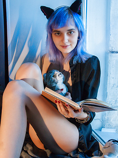 Blond teen girl Anika A shows her small sexy tits