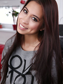 Brunette coed Paula rides her man reverse cowgirl style as she takes him hard and deep in her dripping shaved pussy