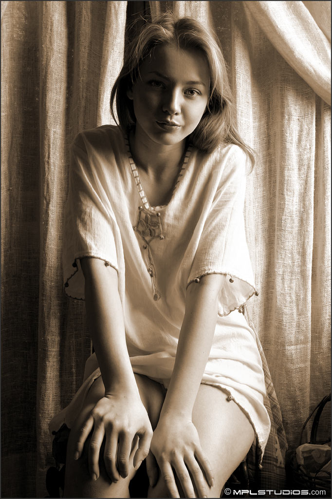 18-year-old blonde Marta A shows her tight ass and slit during solo action