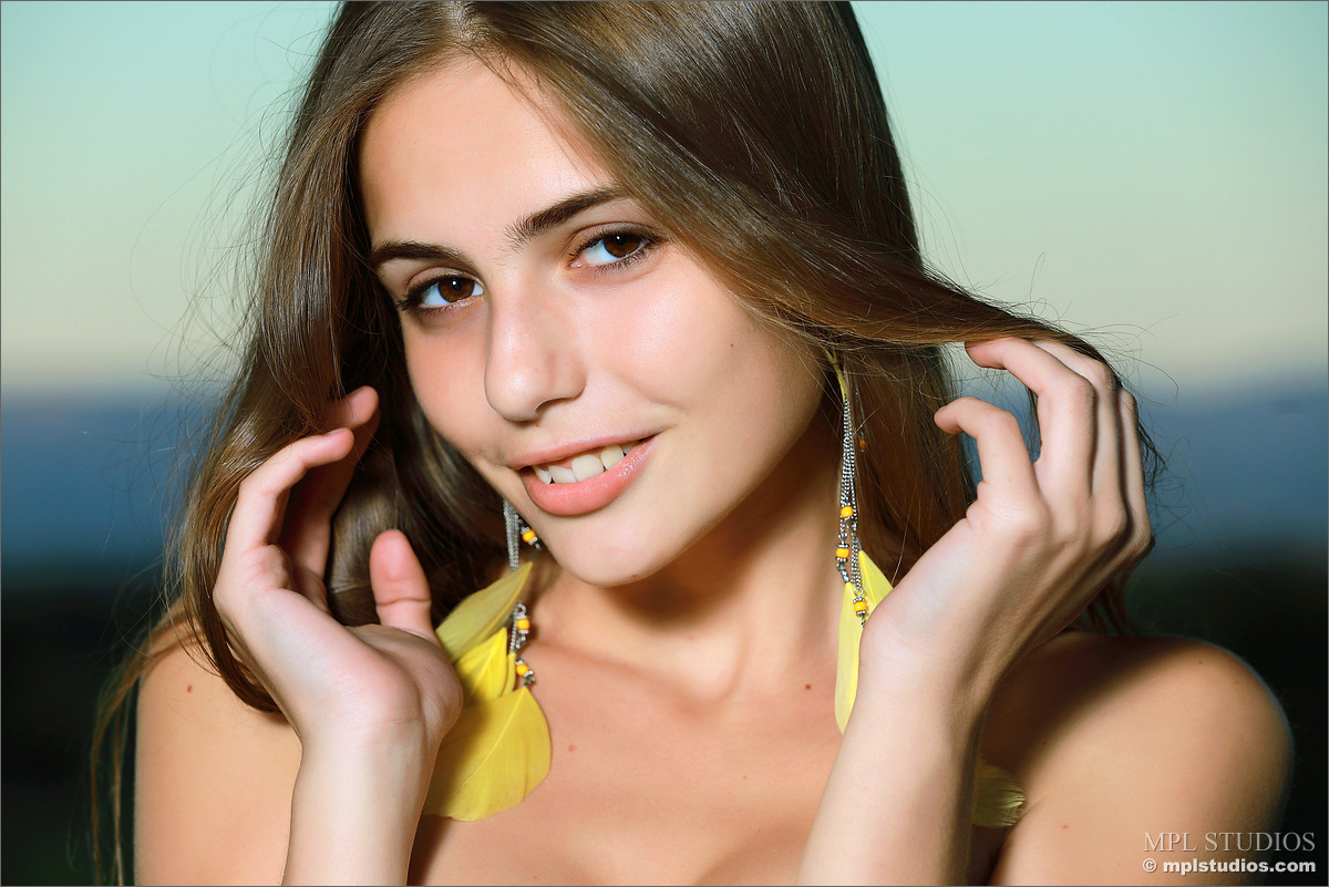 Beautiful tanned blonde teen from Russia Mischa shows her perfect tits