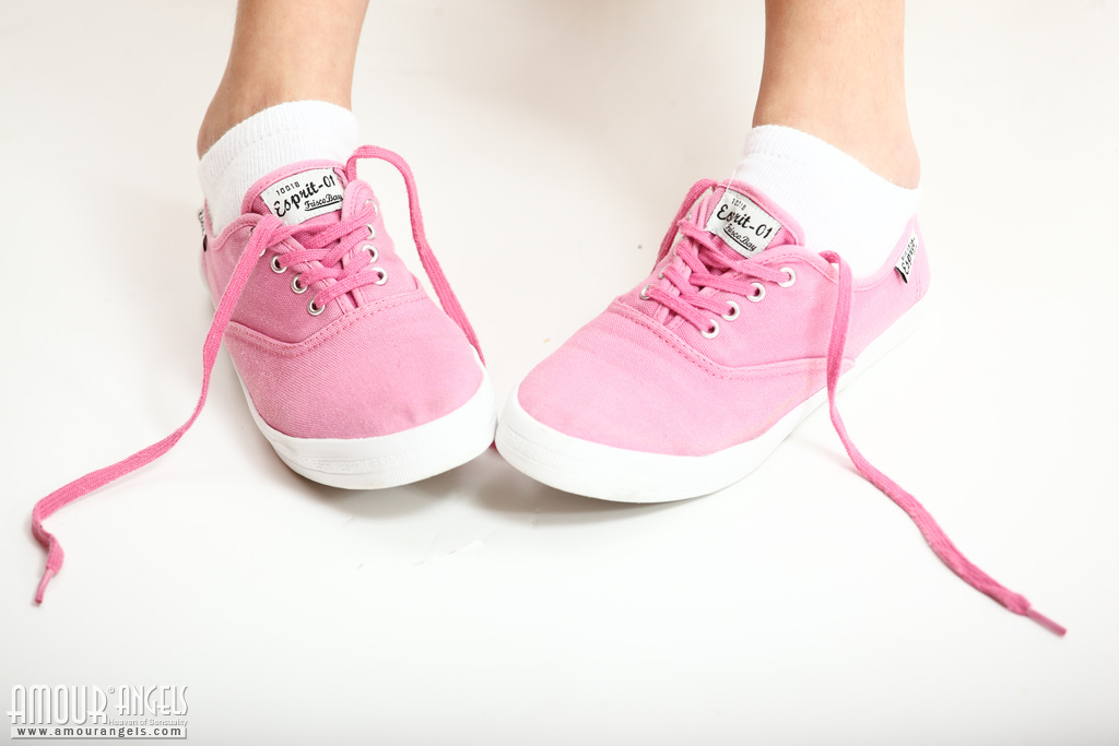 Barefoot Asian amateur Bella masturbating shaved pussy on couch