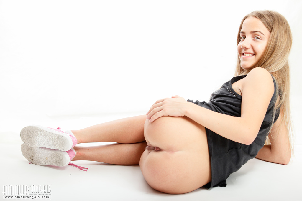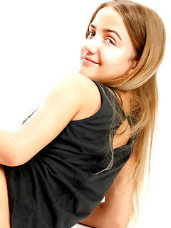 Gentle teen with tiny tits Debella Z strips down and caresses shaved pussy