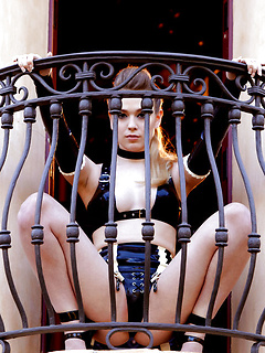 Sexy teen girl Malisha as a Bondage Bunny. She wearing leather gear and show her sexy teen pussy and butt hole.