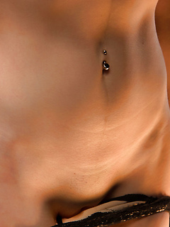 Gentle teen with tiny tits Debella Z strips down and caresses shaved pussy
