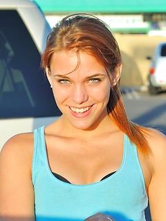 Young american teen athlete Julie Wheeler body maintenance in yoga pants