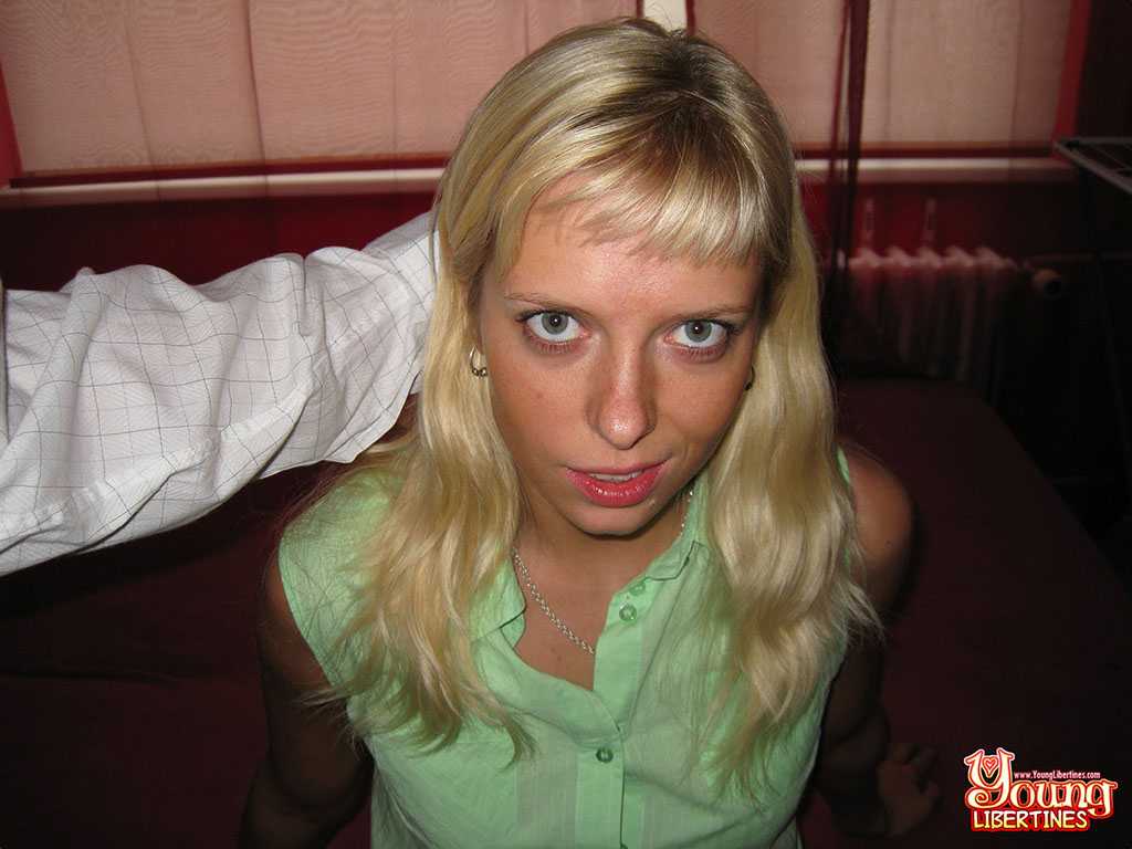Blonde girlfriend takes selfshot pictures of her perky little tights and perfect tight pussy