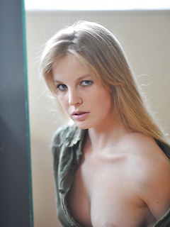 Join blonde babe Dido Angel as she fondles her busty tits and uses her magic fingers to drive her bald wet pussy wild