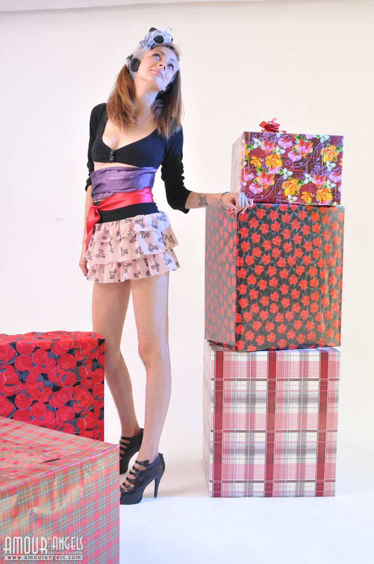Cute brunette girl Kara from Russia, she shows her sexy young body - bald pussy and small tits in Room To Move