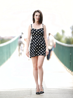 Teen in short skirt Heaven Starr shows off her tiny tits in public