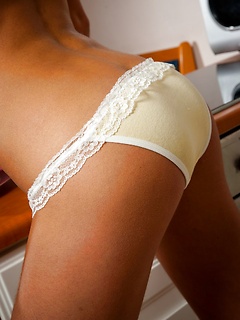 Cute 18 year old blonde Yana F strips to her socks in a saucy manner