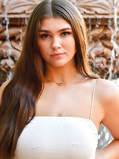 Busty blonde babe Sophia Knight undressing for outdoor masturbation