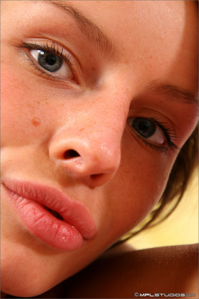 Nerdy teen Callie Klien unveils her small breasts and shaved vagina on a chair