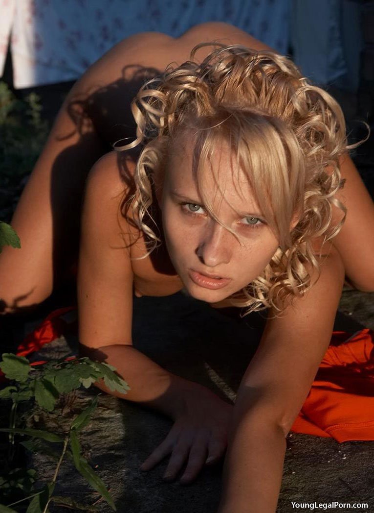 Blond russian teen Kisa A shows her small tits and pretty ass