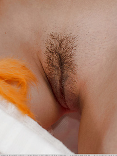 Amateur coed Amy Faye plays with her fully hairy pussy.
