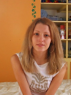 Blue-eyed blonde Pinky June rides a dildo pillow