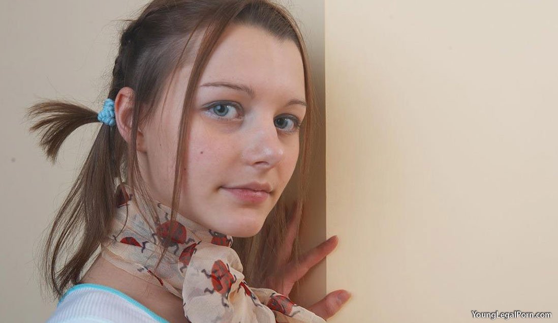 Blond russian teen Kisa A shows her small tits and pretty ass