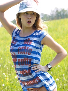 Nude and very skinny teen Caprice outdoors