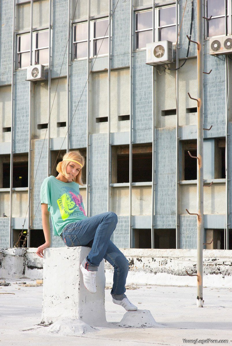 Cute 18 year old blonde Yana F strips to her socks in a saucy manner