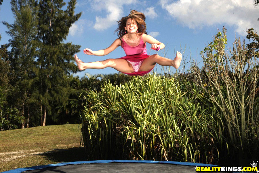 Smoking hot ass long leg teenie on a trampoline gets fucked hard in these outdoor fuck fucking pics